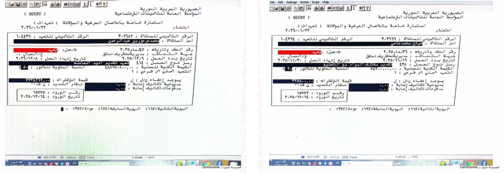 في المقابل، أقرّ رضوان صالح، مدير مشروع شركة “العرعور” في مشفى المواساة، بعدم تسجيل جميع العمال في التأمينات الاجتماعية، قائلاً: “لا نسجل سوى العمال الذين يعملون منذ فترة ضمن الشركة، حتى لو تنقلوا بين المشافي، بعضهم يرفض التسجيل كي لا يُخصم من المعاش الشهري”.