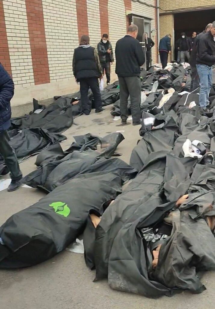 وبحسب شهادات أطباء، امتلأت ثلاجات الموتى واضطرت بعض المستشفيات إلى وضع أكياس الجثث في الأفنية بسبب نقص المساحات والمعدات، في وقت تصل فيه الضحايا بشكل متواصل عبر سيارات الإسعاف، وشاحنات صغيرة، وسيارات خاصة، وحتى محمولين سيرًا على الأقدام من قبل ذويهم.